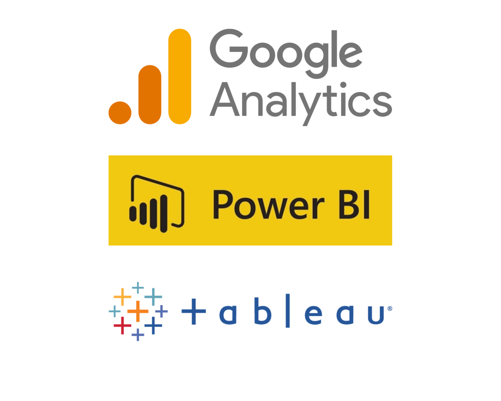 Google Analytics for website analytics, Tableau for data visualization, and Power BI for comprehensive business analytics.